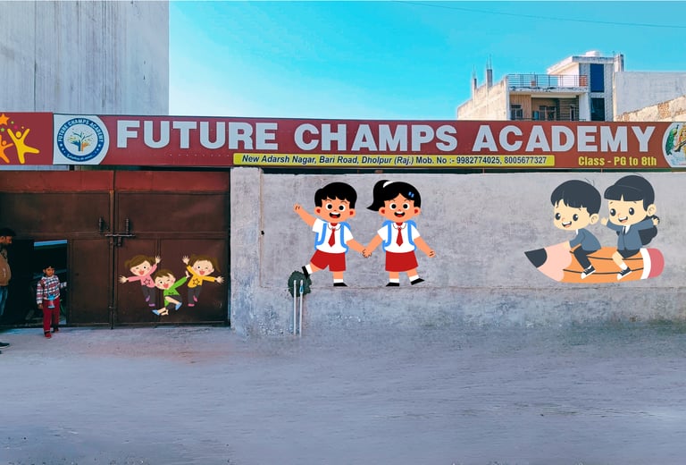 At Future Champs Academy, we believe education is more than textbooks and exams—it's about nurturing confident, curious, and compassionate individuals. Established in 2019 in New Adarsh Nagar, Dholpur, our school offers a holistic learning experience from Playgroup to 8th Standard, blending academics with sports, arts, and life skills.